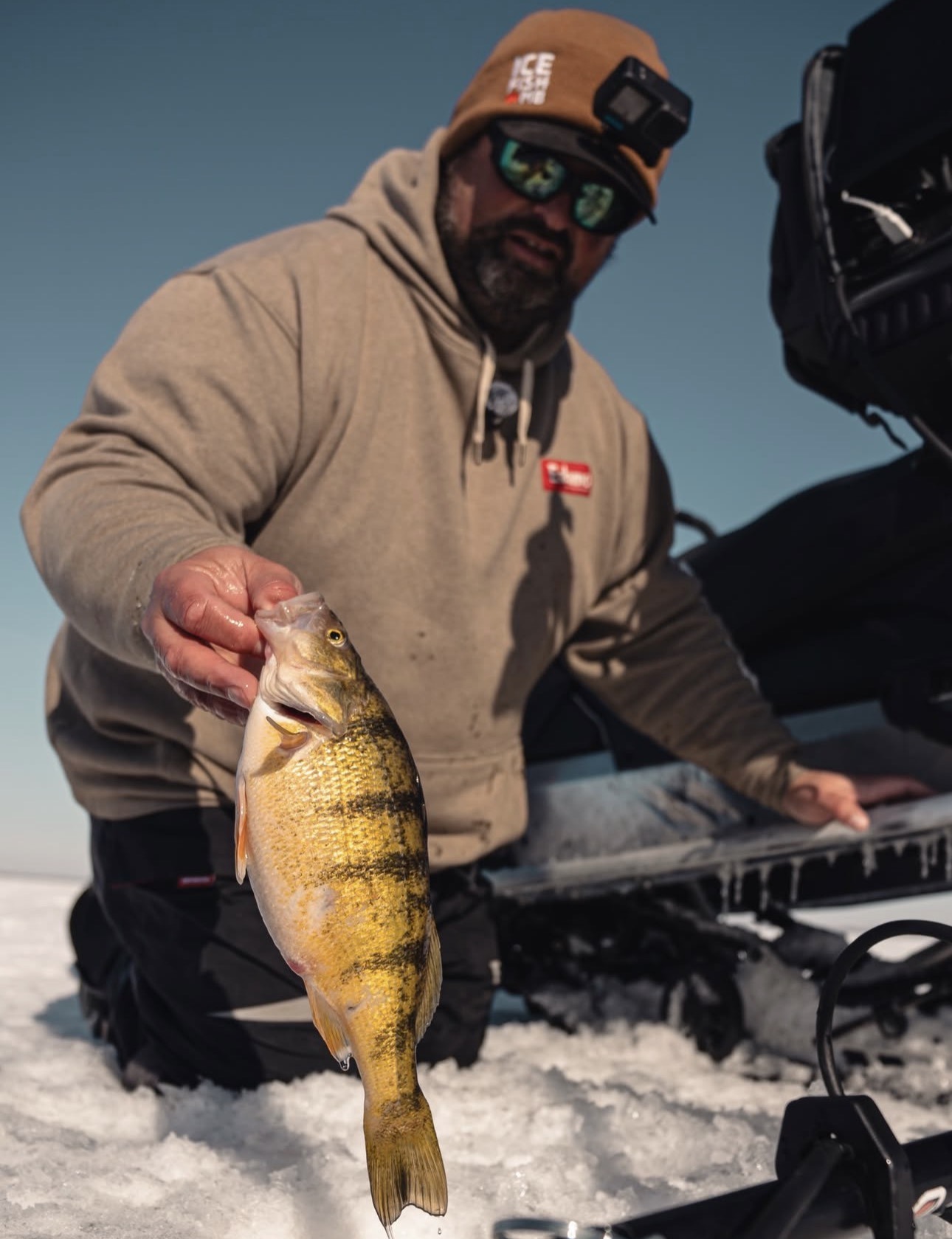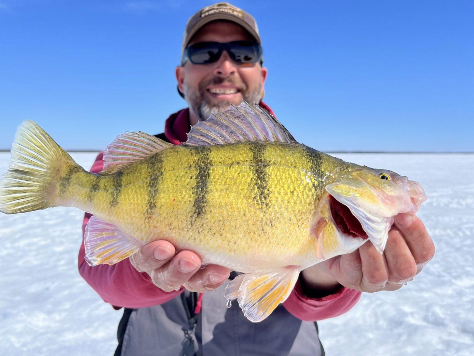 La perche jaune est également un mets exceptionnel. Les poissons mesurant entre 23 et 30 cm sont généralement considérés comme ayant la taille idéale pour être consommés. Une fois que les perches dépassent les 33 cm, elles prennent un aspect complètement différent. Chaque centimètre supplémentaire ajoute un poids et une épaisseur considérables, créant ainsi des perches géantes que les pêcheurs appellent souvent « ballons de football jaunes ». Ces poissons plus gros sont agressifs et étonnamment puissants sur des équipements légers, ce qui les rend encore plus amusants à pêcher à travers la glace.