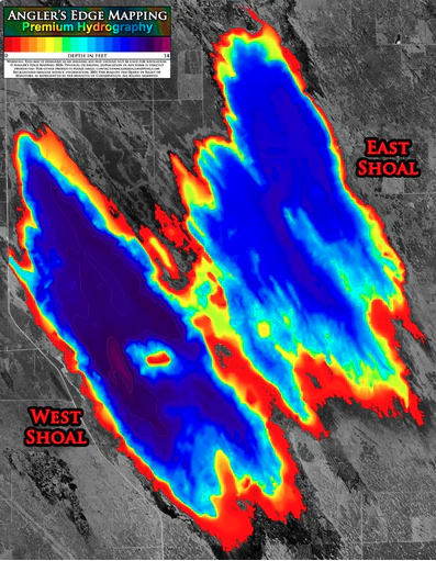 Nouveauté cette année, Anglers Edge Mapping a publié une carte topographique détaillée des lacs East et West Shoal. Cela permet aux pêcheurs de mieux comprendre la structure de ces vastes lacs.