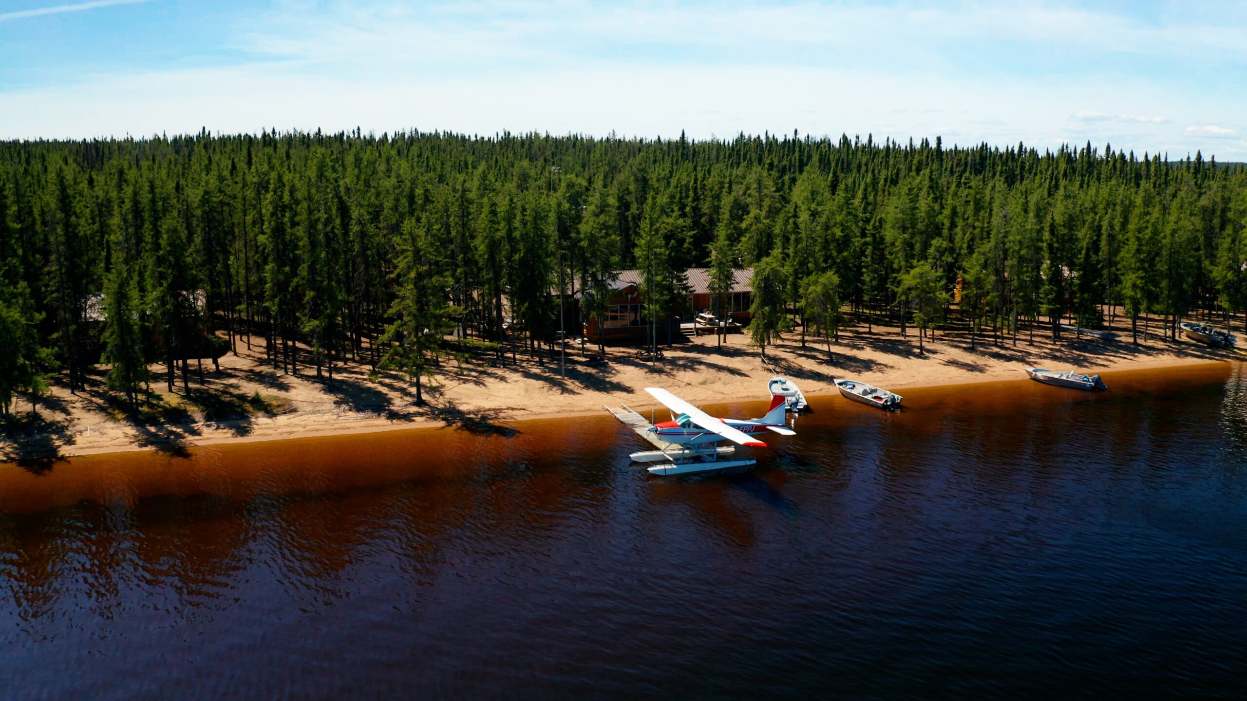 À notre arrivée à Lynn Lake, nous nous sommes rendus à la base d'hydravions et avons embarqué à bord d'un hydravion pour faire le court voyage jusqu'au lac Sickle. Une fois dans les airs, on se rend compte à quel point ce paysage est unique et isolé. Des lacs et des rivières à perte de vue serpentent à travers les gigantesques eskers de sable formés par les dépôts glaciaires. On a vraiment un magnifique aperçu du monde, exactement tel qu'il se présente depuis des milliers d'années.